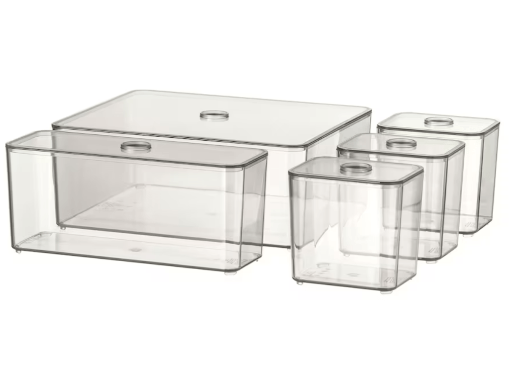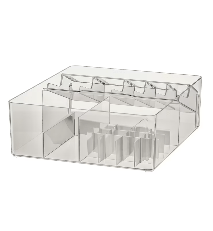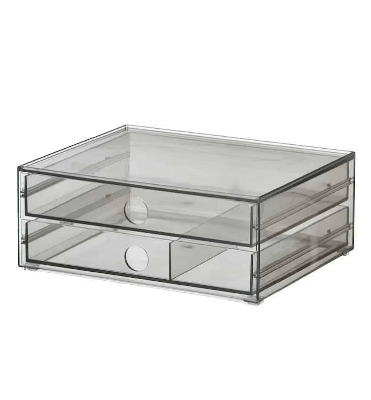 J’ai aussi essayé de trouver des casiers ou tiroirs en plexiglas, comme elles en utilisent souvent, sur Amazon etIKEA dans le rayon salle de bain :