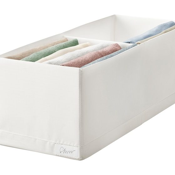 🌸 Toutes ces boîtes sont la base pour dans mes dressing et commodes 😍. Il n’y a aucun habit qui n’est pas casé dans une de ces jolies boîtes et le rendu est vraiment magnifique. Les petits inserts SKUBB sont parfaits pour les sous-vêtements, chaussettes, collants, pyjamas.
