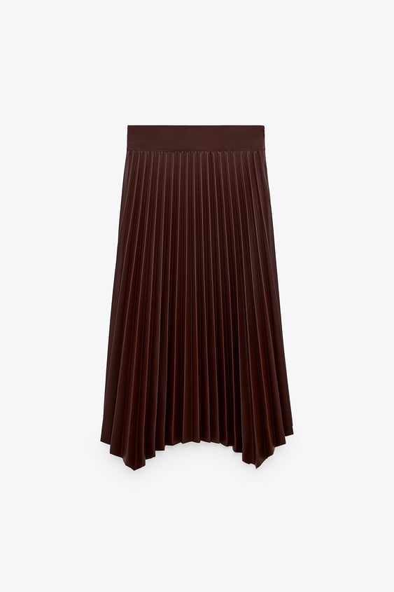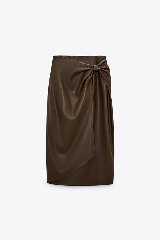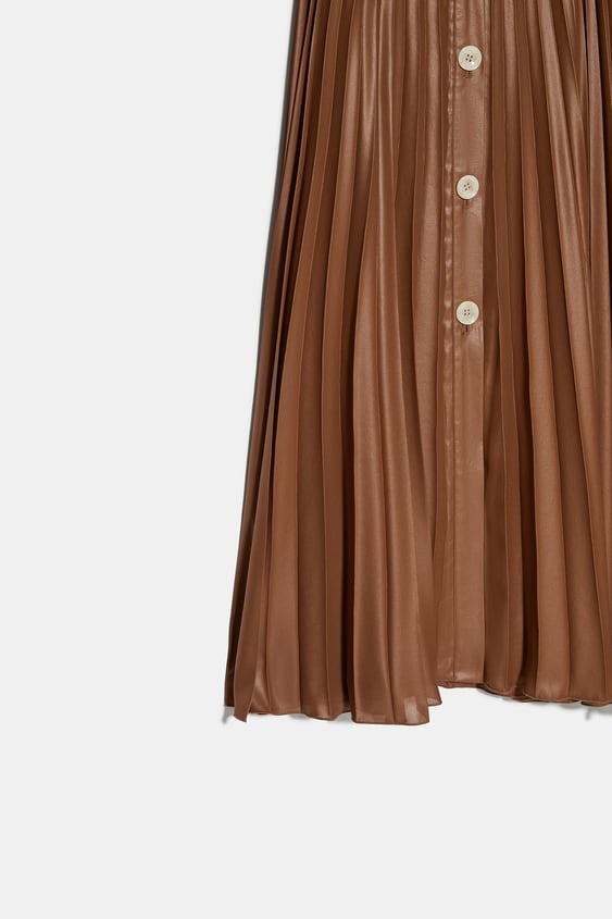 Jupe plissée en similicuir taupe 39,95€