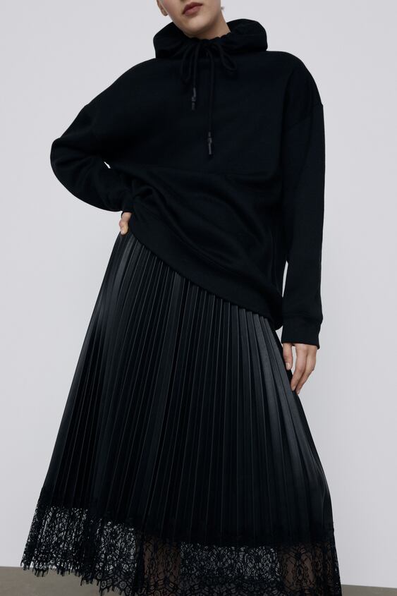 Il y a beaucoup de jupes en similicuirs et plissées. Je m’excuse par avance pour celles qui aiment moins ce style, mais en ce moment c’est ce qui se fait le plus chez Zara et Mango… Dès que j’en trouve en tissu et droites, je les mettrai dans un nouvel article.