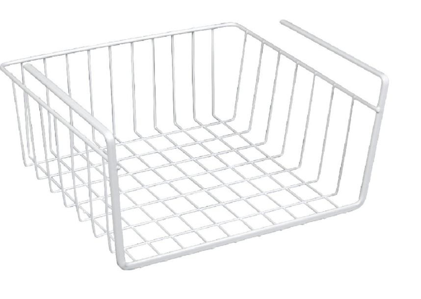 Les paniers suspendus sont très pratiques pour utiliser l’espace vide en hauteur dans une armoire ou étagère. Dans la cuisine, j’ai mis les petites assiettes dessus et les petits bols en verre. Dans mon armoire ils servent pour les petits tee shirt ou les pyjamas.