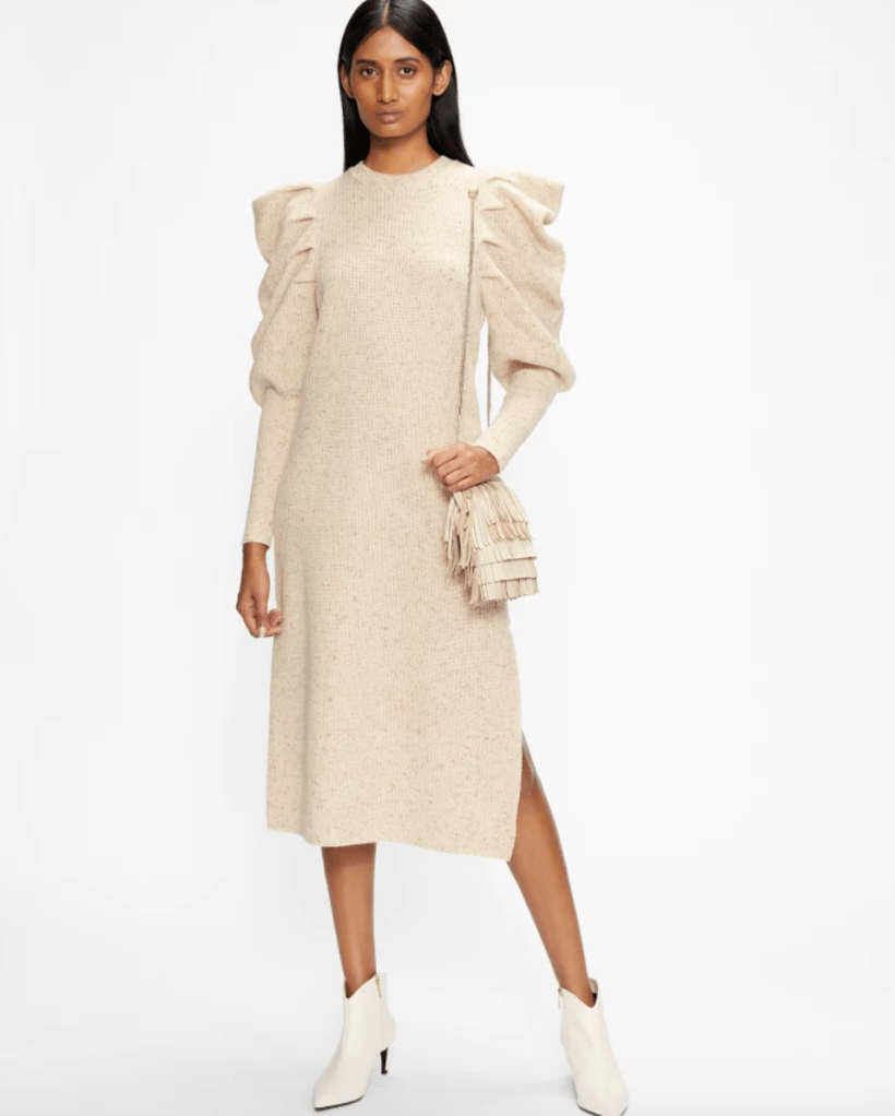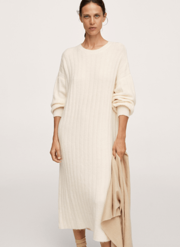 Mango a choisi le chic, l’élégance et le casual pour cette rentrée. Pour celles qui habitent dans des contrées lointaines où il fait froid pendant les fêtes (Paris … avec ses épisodes hivernaux en été 😂😂😂), la robe en pull blanc est sublime : chic mais hyper confortable en même temps. Conseil : à rajouter avec les ceintures à trois tours de chez 👉 Pola Paris.