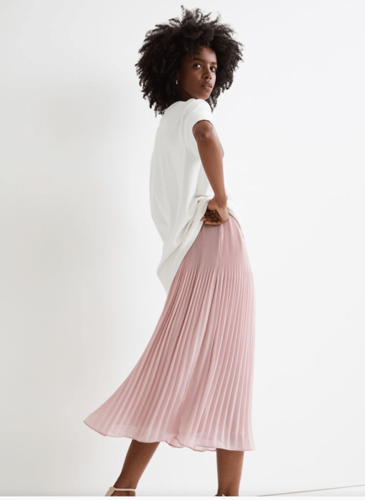 On reste dans le sobre chez H&M, où on pourra trouver notre bonheur pour une tenue de Kippour avec un choix de robes et jupes blanches. L’éternelle et indémodable jupe plissée est déclinée en plusieurs coloris. Vous vous assurez ainsi d’être classe et belle avec un beau chemisier/blouse assorti.