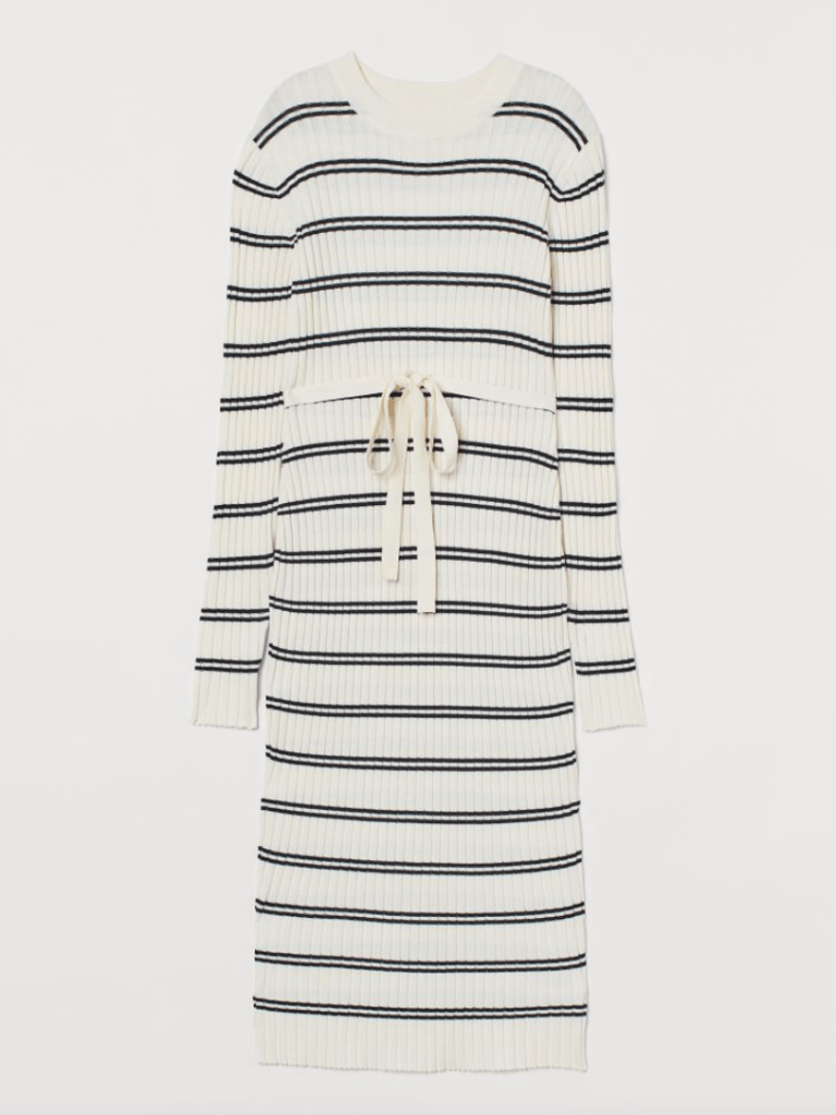 H&M nous propose de très jolies robes pulls, parfaites pour nos petits festins friquets dans la Soucca. Une petite préférence pour la robe pull marinière qui a l’air très confortable et élégante en même temps. Le petit must, un collier chaine doré pour pimper la tenue.