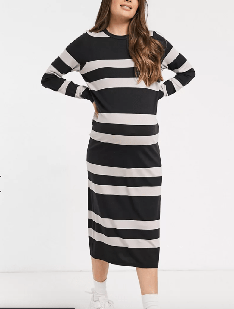 Je vais vous présenter ma petite sélection du moment. J’ai mis quelques robes légèrement au-dessus du genoux pour les filles qui sont de petites tailles et qui n’aiment pas que les tenues soient trop longues. Il y aura principalement les marques H&M Mama, Envie de Fraise et Asos Maternity.