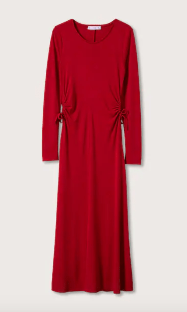 Bingo, j’ai réussi à trouver le même gilet version manches longues (sold out le même sans manche de la série) . Il faut bien superposer le gilet par dessus la robe pour créer le même effet et la ceinture rouge pour un meilleur démarquage de la silhouette.