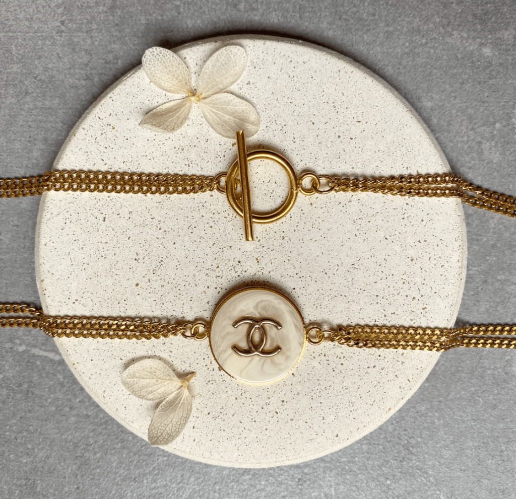 Des bijoux upcyclés(on redonne vie à quelque chose de déjà existant), réalisés à partir de véritables boutons de Chanel, Yves Saint Laurent. Anaïs, la créatrice retravaille les pièces qu’elle chine sur les vêtements, sacs, des marques de luxe, pour nous proposer de magnifiques bijoux. On peut accéder à du Chanel à un prix très abordable 🤩.