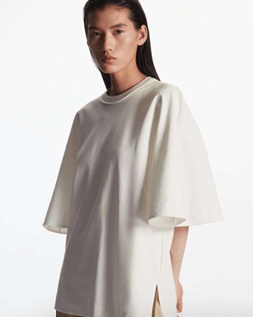 Alors là, BREAKING NEWS sur les hauts. Je n’ai jamais vu autant de tee-shirts en collection été avec des manches. Impressionnant! En plus la coupe oversize nous permet de ne pas avoir le vêtement qui nous colle, d’être confortable et stylée.