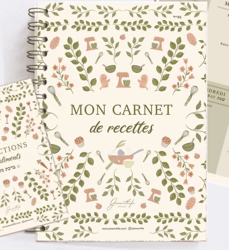 Vous pouvez aussi acheter un super cadeau spécial Chalom Baït chez Jewartlife : le carnet de recettes. Je vois déjà vos sourcils se hausser d’incompréhension, mais je m’explique sans plus tarder. Avez-vous des posts-its, des feuilles de recettes qui trainent un peu partout dans votre cuisine, salle à manger ou sur vos comptes Instagram?