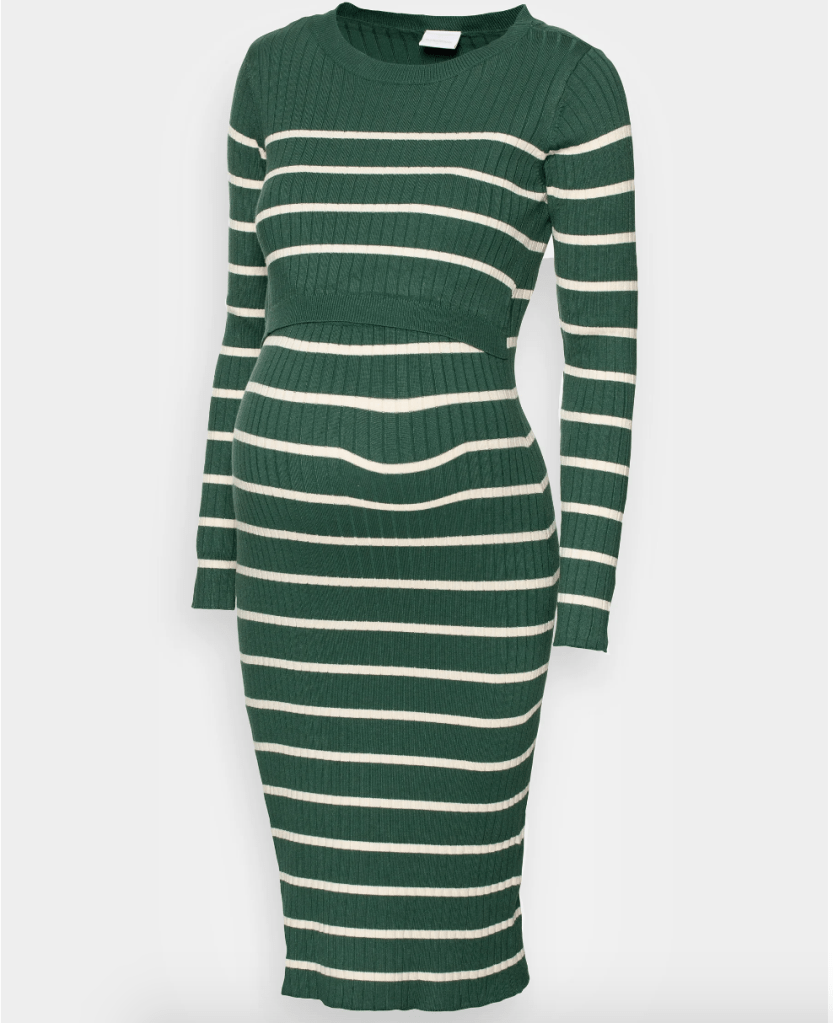 Une robe parfaite pour vous promener au parc avec votre bébé car la robe est égalemente conçue pour l’allaiter. Une belle veste en jean, un joli bibi de chez Odèle Paris et le tour est assuré. Et pour le confort de la balade, des bottines à talons plats.
