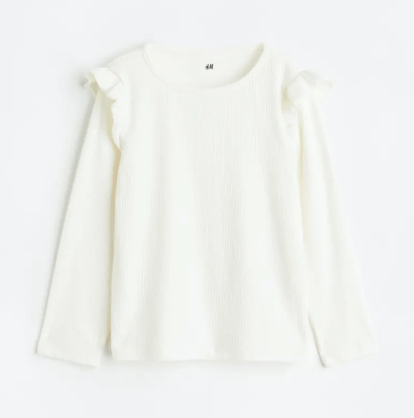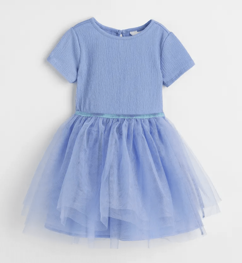 C’est vrai qu’il est plus difficile de trouver des vêtements tsniouts pour les enfants, mais en prenant une taille au dessus en général chez H&M on s’y retrouve. Et si les manches sont courtes, pas de souci, il fait encore frais et il est possible de rajouter un petit haut fin blanc par-dessous.