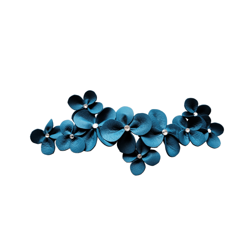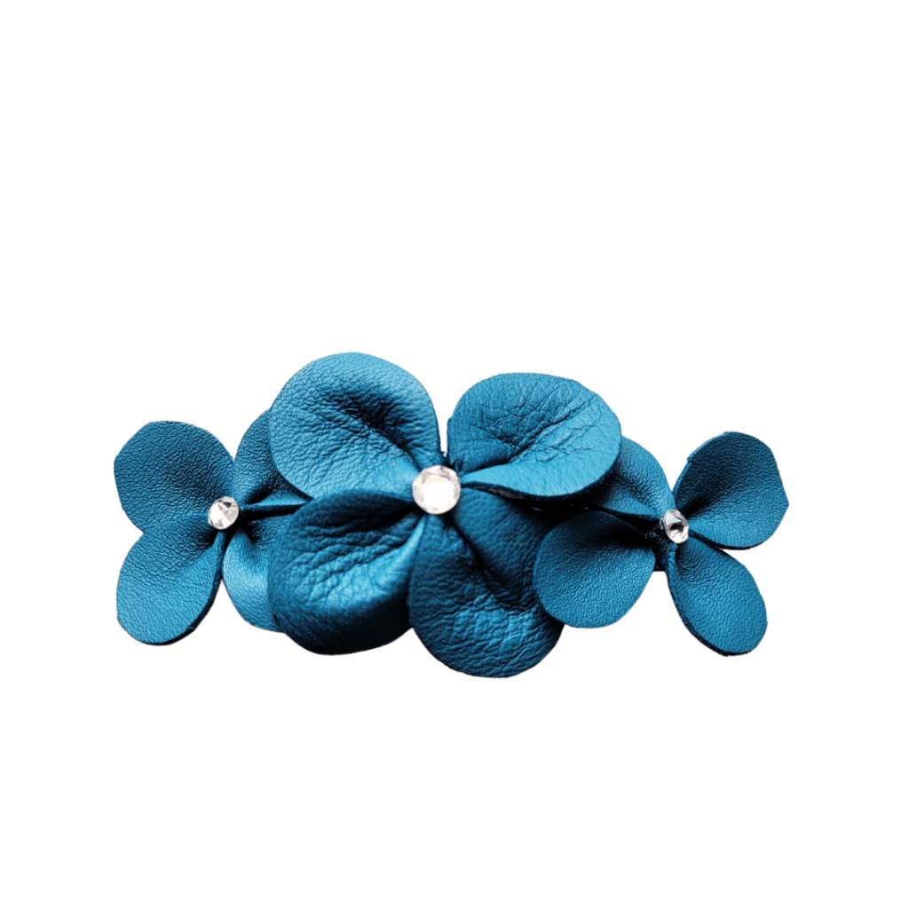 J’ai complété la tenue avec un accessoire de chez Odèle Paris, le peigne Daisy, en bleu canard, que Johanna m’avait sur mesure pour moi et ma fille.