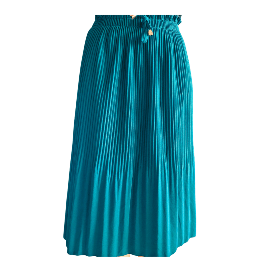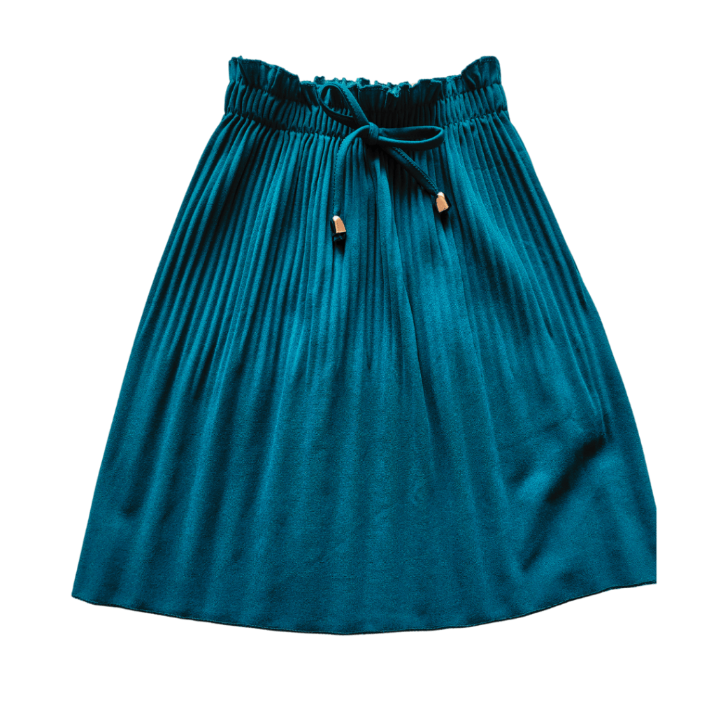 Concernant la jupe plissée bleu canard, la couleur est incroyable. Bon je l’avoue, c’est une de mes couleurs préférée.