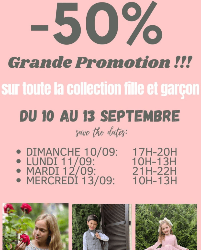 De grandes promotions sur l’ancienne collection : des jupes, des hauts, des robes pour habiller nos jolies princesses!!